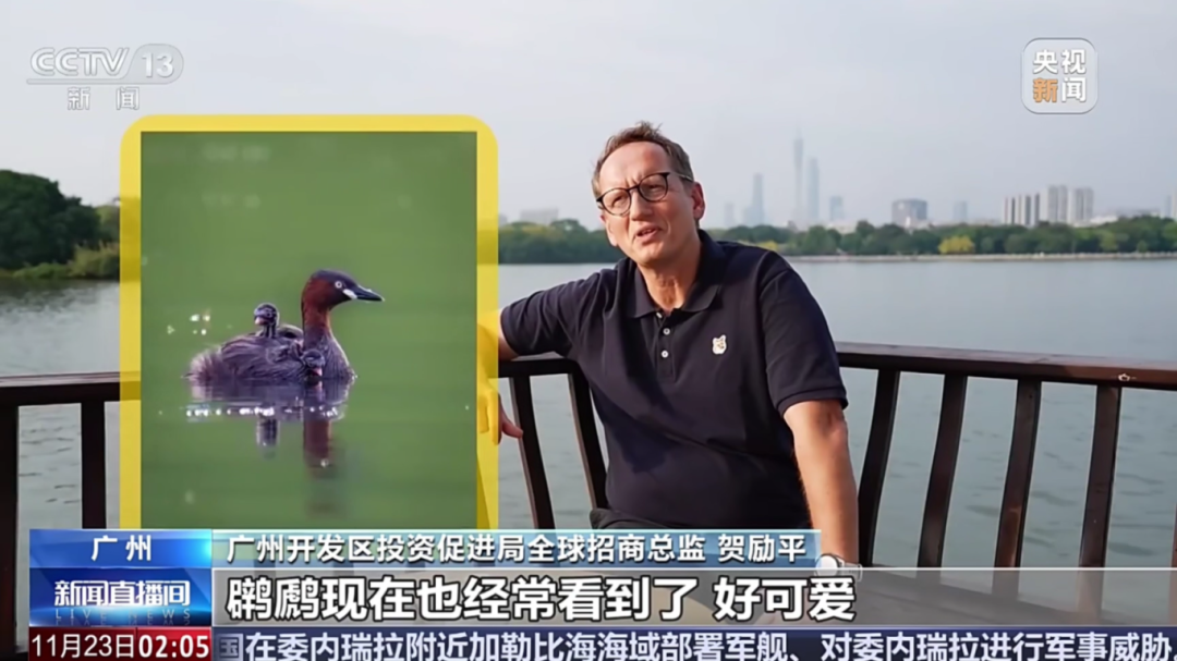 在广州开发区投资促进局全球招商总监、德国人贺励平眼中,海绵城市、光伏能源与随处可见的生态细节,共同勾勒出黄埔乃至大湾区绿水青山的生态图景。