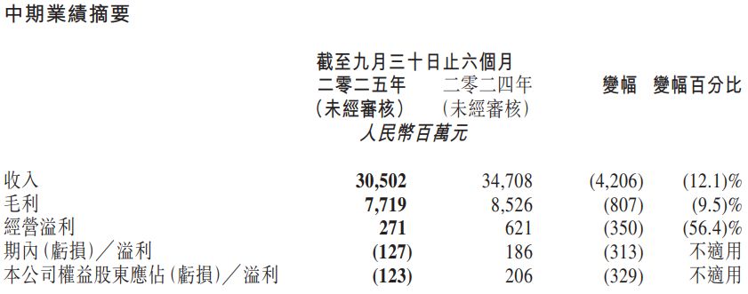报告期内,来自销售货品的收入为人民币290.81亿元,较上年同期的331.86亿元减少41.05亿元,减幅为12.4%。